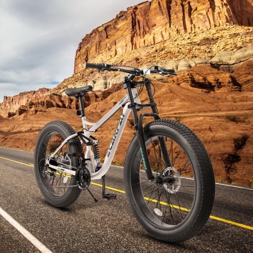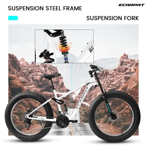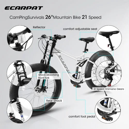 【4-Zoll-Fat-Reifen】Mit einer Breite von bis zu 4 Zoll bieten diese Reifen eine bis zu 5-mal höhere Verschleißfestigkeit als herkömmliche Fahrradreifen. Starker Grip und Rutschfestigkeit – ideal für jedes Terrain, Offroad-Strecken und Stadtstraßen.