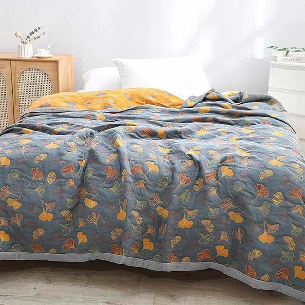 Ginkgo Leaf Reversible Cotton Throw Blanket