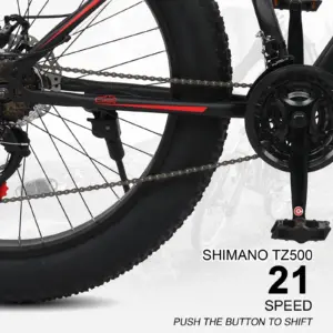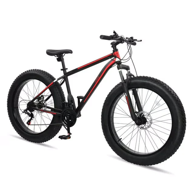 CampingSurvivals Fatbike, 26-Zoll-Räder, 21 Gänge, Rahmen aus hochfestem Stahl, Rot/Schwarz