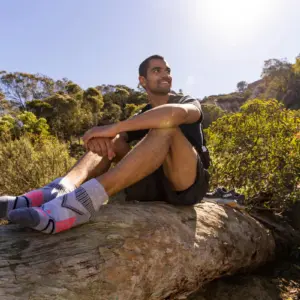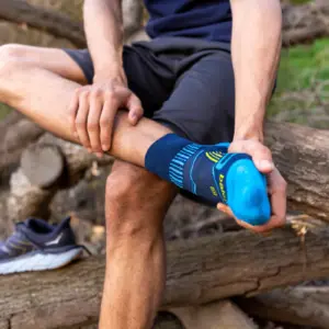 Balega’s seamless toe construction removes friction at the front of the sock, while a deep heel pocket