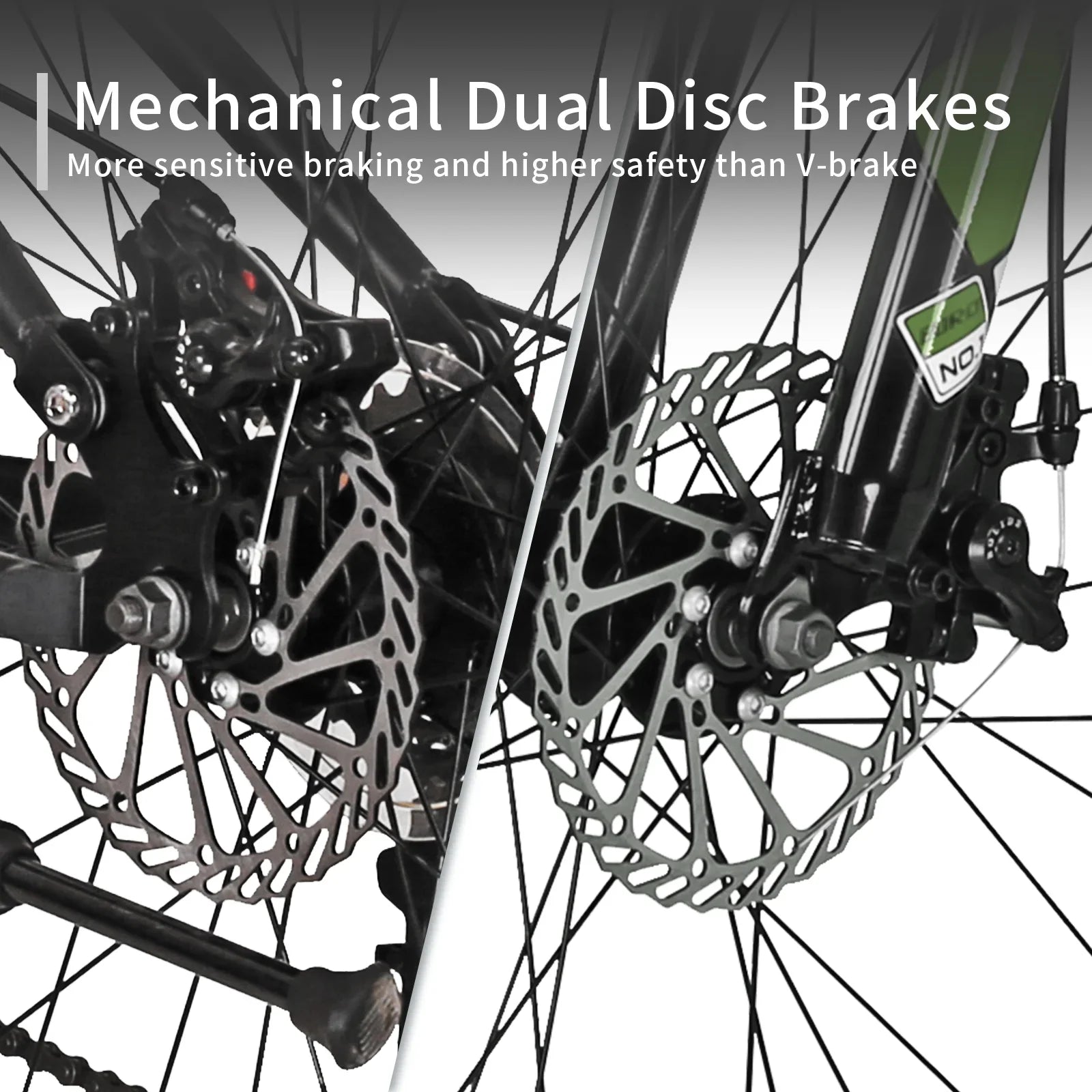 【Bremssystem】Bietet eine stärkere, schnellere und zuverlässigere Bremsleistung als herkömmliche V-Brakes. Scheibenbremsen schonen zudem die Reifen und sind deutlich langlebiger. Dank ihrer gleichmäßigeren Bremswirkung können Sie den Bremsdruck präziser dosieren.