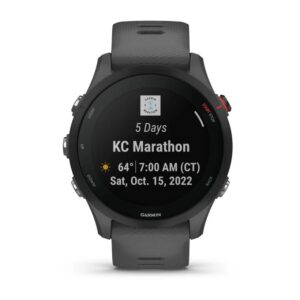 The Garmin Forerunner 255 is a GPS running watch designed for athletes, combining advanced training tools like VO2 Max and daily workout suggestions with health features like heart rate tracking, sleep analysis, and stress management. Durable and versatile, it supports your fitness and well-being in any condition.
