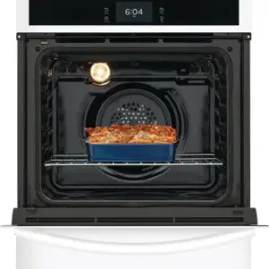 The Frigidaire Gallery 24″ Single Electric Wall Oven with Air Fry allows you to make healthier and delicious meals for your family- right in your oven. Get faster, more even baking results with True Convection, that evenly circulates hot air throughout the oven. Get to mealtime faster with quick preheat and enjoy crispy, perfect meals with steam roast. This wall oven also features a premium touchscreen control panel and two convenient cleaning options.
