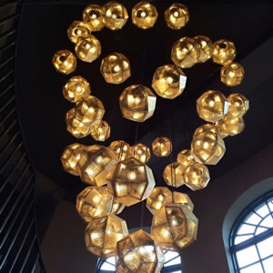 Make a bold architectural statement with the Geometric Cluster Pendant Light – a visually striking fixture designed for expansive interiors. Featuring multiple faceted glass pendants suspended at varying heights, this chandelier casts a warm, inviting glow through intricately textured geometric shades. Ideal for foyers, staircases, hotel lobbies, or modern open-plan dining areas, this installation-ready centrepiece effortlessly balances opulence and contemporary design.