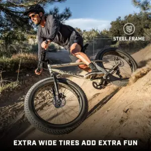 26-Zoll-Räder: Ausgestattet mit 26-Zoll-Rädern und 4 Zoll breiten Stollenreifen bietet dieses Mountainbike hervorragende Traktion und Kontrolle auf verschiedenen Untergründen, von Feldwegen bis hin zu steinigen Pfaden. Die breiten Reifen verbessern die Stabilität und sorgen für ein komfortables Fahrgefühl auch auf unebenem Gelände.