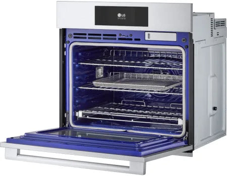 This electric convection wall oven from LG provides 4.7 cubic feet of capacity, 2 heavy duty racks and 5 rack positions, giving you the space and flexibility you need for high-performance cooking. Not only does this oven feature a convection element, it also features a Convection Conversion option, which will convert conventional oven times and temperatures for convection preparation.