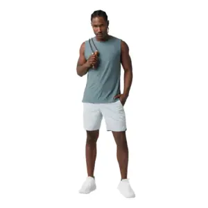The Vuori Banks Short, crafted in Vuori’s VCycled™ fabric, epitomize versatility. Each pair is created from four to five recycled plastic bottles, seamlessly transitioning you from land to sea and beyond. These athletic shorts feature a scalloped leg, making them your go-to performance essential for any activity.
