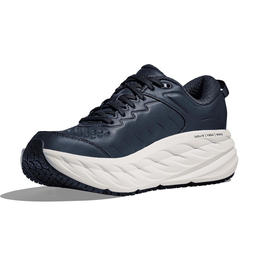 The Hoka Bondi SR transforms HOKA’s most cushioned road shoe into a versatile, everyday essential built to meet the demands of daily life. Upgraded with water-resistant leather, a slip-resistant outsole, and an EVA midsole for all-day comfort, this durable design is perfect for long hours on your feet. Equipped with ultra-grippy, full-ground contact rubber, the Bondi SR is crafted to excel in tough environments, making it a dependable choice for professionals in the service and medical industries.