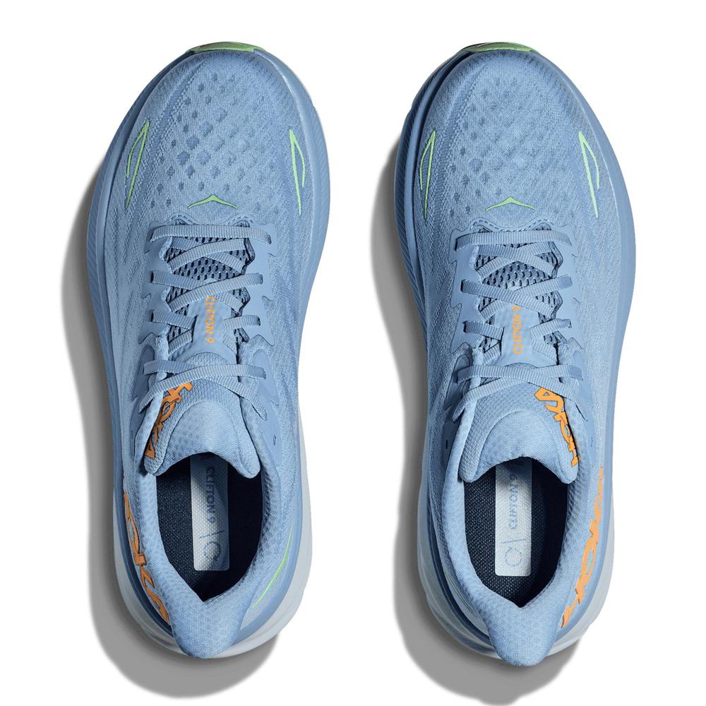 The Hoka Clifton 9 is lighter and more cushioned, featuring a 3mm higher stack height, responsive foam, and an improved outsole for better performance. Updates include a sleek upper, plush heel, reflective panel for visibility, and a secure, streamlined fit.