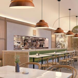 Perfectly suited for kitchens, dining areas, or living rooms, the Midori light blends form and function. Its sculptural design casts a subtle, warm glow, making it an ideal centrepiece above a dining table or as ambient lighting in a modern home.