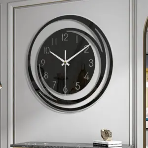 Crafted from high-quality acrylic with a glossy black and silver finish, this clock enhances both minimalist and modern spaces. The large, easy-to-read numbers and white hands offer excellent legibility, while the silent quartz movement ensures a peaceful atmosphere — ideal for living rooms, bedrooms or offices.