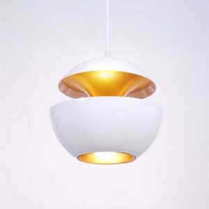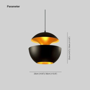 Make a bold statement in your home with this modern black pendant light, defined by its sculptural open-form design and warm metallic interior. The split-dome structure emits a balanced glow both upward and downward, creating depth and ambience in kitchens, dining rooms, or living spaces.