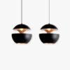Its smooth, curved shape softly diffuses light downward, making it ideal for illuminating kitchen islands, dining tables, or workspaces. The subtle timber detail at the top adds warmth and organic contrast to the sleek black shade, creating a timeless lighting piece that feels both modern and natural.
