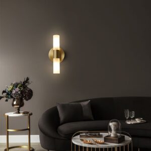 Enhance your interior with the elegant Modern Gold Wall Sconce, designed for those who appreciate timeless sophistication blended with minimalist appeal. This wall-mounted light features a sleek cylindrical frosted glass diffuser and a brushed gold base that adds a touch of luxury without overpowering the room.