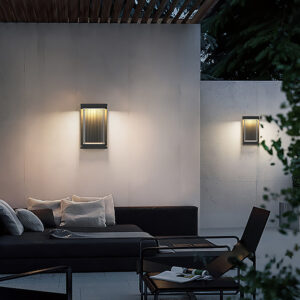 Bring modern sophistication to your outdoor spaces with this Ribbed Glass Outdoor Wall Light, a perfect blend of architectural elegance and functional design. With its vertically textured glass panels and minimalistic black frame, this fixture creates a warm and inviting glow that enhances any exterior.