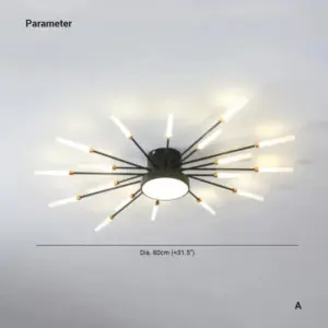 Make a bold statement with this Modern Starburst LED Ceiling Light, a stunning fusion of elegance and innovation. Inspired by mid-century modern design, this gold flush mount fixture radiates from a central disc, with slender arms extending outward like a sunburst to create a captivating ceiling centrepiece.