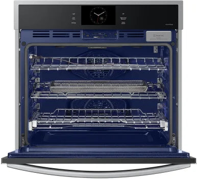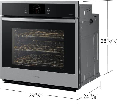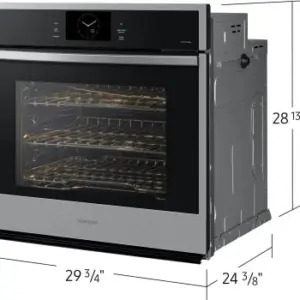 The Samsung Single Wall Oven with Steam Cook features a stunning stainless steel finish that blends seamlessly with the décor of your kitchen. Rich with features like Steam Cook, Air Sous Vide, and Air Fry, you’ll enjoy cooking just like a professional in your kitchen. With 5.1 cu. ft. capacity, Wi-Fi connectivity, and Digital Touch Controls, it delivers high performance enough to cook a feast. Plus, this wall oven is easy to monitor and control, fast cooking, and does the hard work for you with it’s self-cleaning system. Available in Stainless Steel and Matte Black Steel to complement other appliances. Whether you prefer to complement, match, or contrast – the choice is yours.