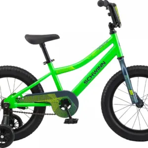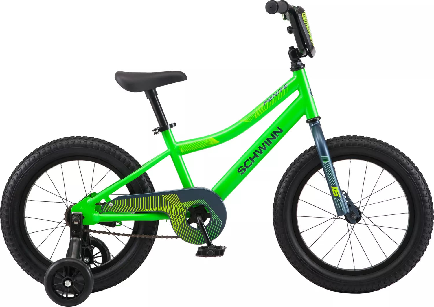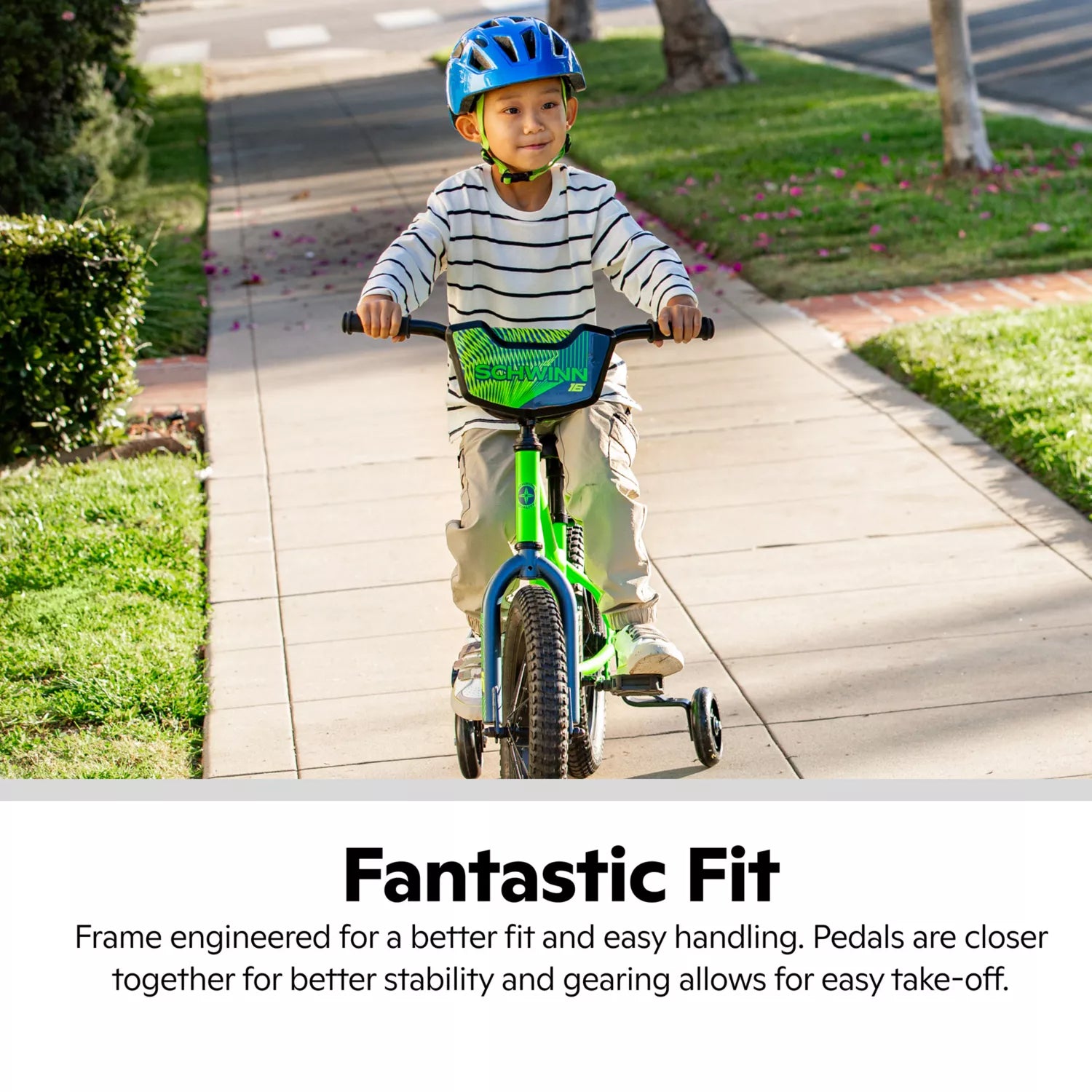 Abnehmbare Stützräder und eine Lenkerplatte verleihen dem Fahrrad einen Hauch von BMX-Stil.