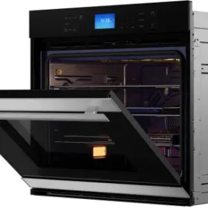 Sharp’s modern and elegant built-in wall oven features edge-to-edge black glass and stainless steel design with an all-new premium, Soft-Close Door that closes quietly and prevents slamming.