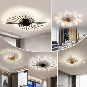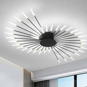 Bring a radiant focal point to your interior with the Starburst LED Flush Mount Ceiling Light. With its striking radial design of slim black rods tipped with soft white LED tubes, this statement piece mimics a modern starburst or sunburst aesthetic.