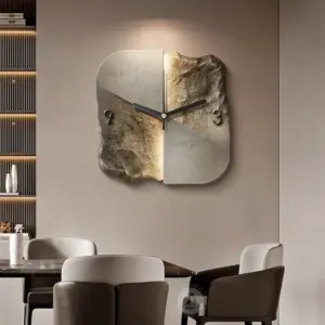 Transform your interior with this sculptural wall clock, blending raw natural textures and modern minimalism. Crafted with a unique asymmetric design, this timepiece resembles the meeting of stone and concrete, evoking a sense of grounded elegance. Perfect for dining rooms, offices, or creative spaces, this clock functions as both a practical tool and a statement piece. The silent quartz mechanism ensures peace and focus, while the contrast between the rugged surface and clean lines adds an artistic edge to any room.