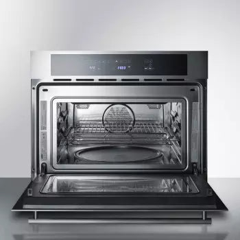 Enjoy complete cooking convenience in modern European style with Summit’s CMV24 speed oven.