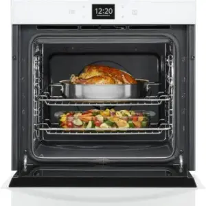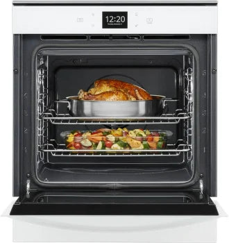 Cook however you want with a 24 inch convection wall oven. Fit your own casserole dishes or bakeware in a wall oven that takes up less space and still gives you the flexibility to cook on multiple racks at once. Bake multiple items with True Convection Cooking and clean this 24 inch self cleaning wall oven using the Adjustable Self-Clean Cycle. This Smart Wall Oven includes useful features like a Touchscreen that provides instant access to your favorite settings and Voice Control with a Compatible Voice-Enabled Device.