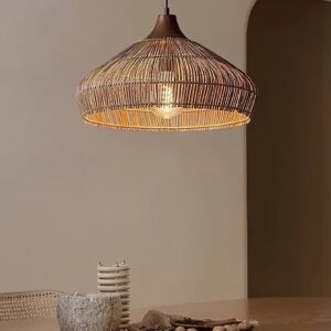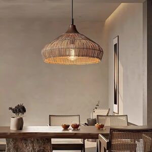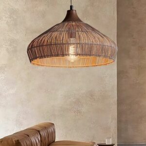 Bring warmth and texture into your interior with this Wicker Rattan Pendant Light, a perfect blend of craftsmanship and natural design. Featuring a wide, organically shaped shade woven from natural rattan, this pendant light casts a soft, diffused glow that enriches the atmosphere of any space.