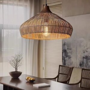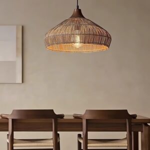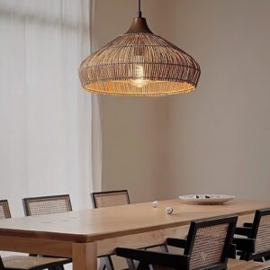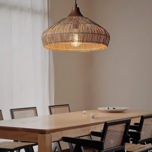 Ideal for hanging above dining tables, kitchen islands or in living rooms, it adds an inviting, earthy touch with its handmade appeal. The open weave allows light to filter through beautifully, creating subtle shadow patterns that enhance the ambiance without overwhelming it.